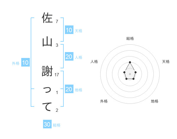 佐山 謝ってさんを姓名の画数から五運を鑑定