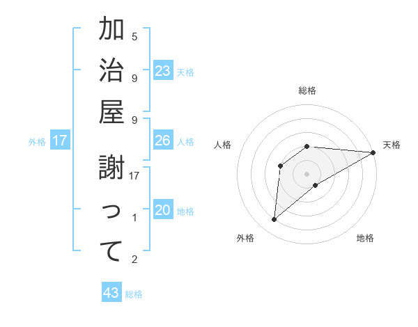 加治屋 謝ってさんを姓名の画数から五運を鑑定