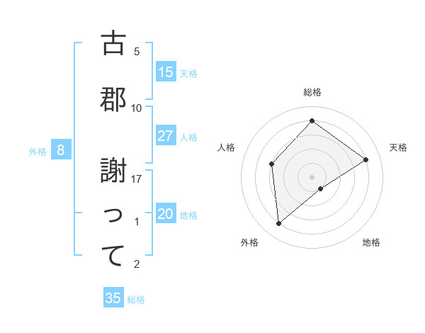 古郡 謝ってさんを姓名の画数から五運を鑑定