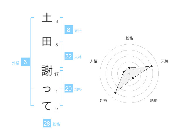 土田 謝ってさんの天格は8画の4点!