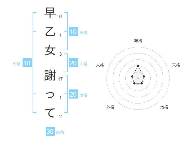 早乙女 謝ってさんを姓名の画数から五運を鑑定
