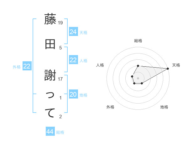藤田 謝ってさんを姓名の画数から五運を鑑定