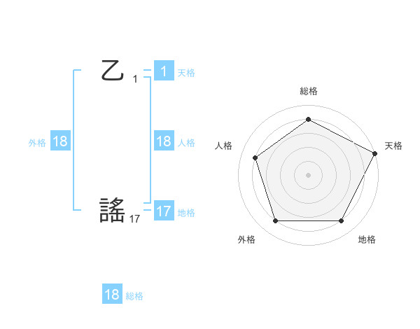 乙 謠さんの外格は18画の4点!