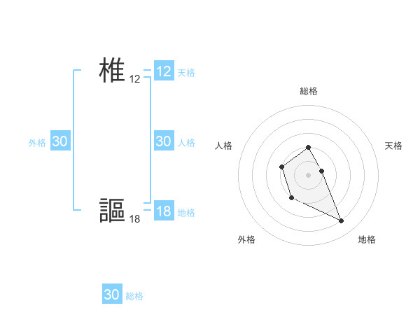 椎 謳さんの総格は30画の2点!
