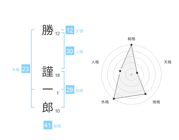 勝 謹一郎さんを姓名の画数から五運を鑑定