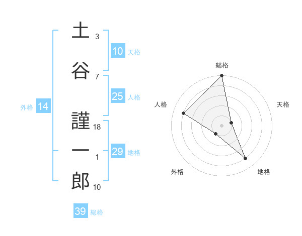 土谷 謹一郎さんの総格は39画の5点!