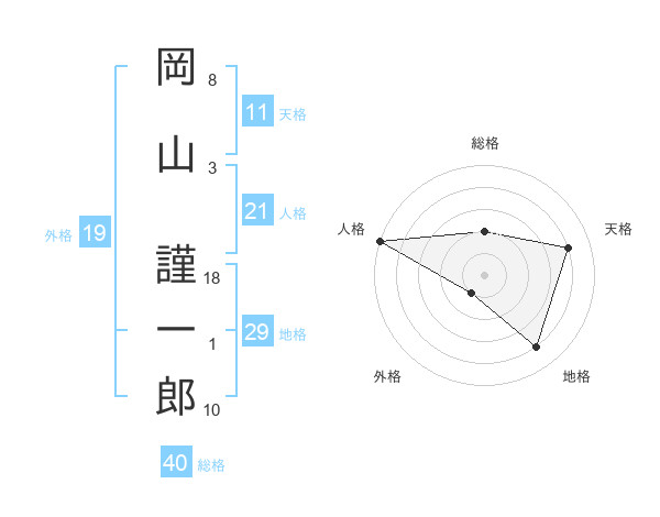 岡山 謹一郎さんを姓名の画数から五運を鑑定