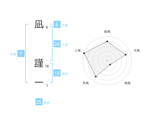凪 謹一さんの天格は6画の4点!