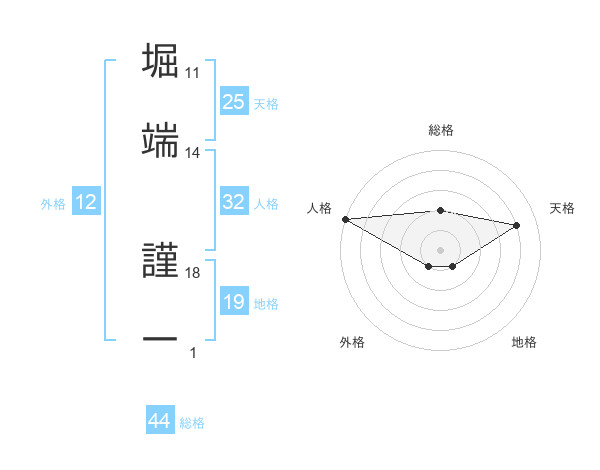 堀端 謹一さんを姓名の画数から五運を鑑定