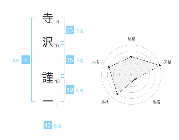 寺沢 謹一さんの天格は23画の5点!