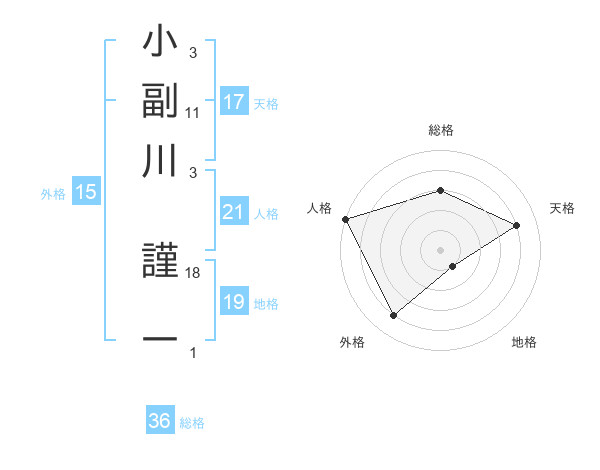 小副川 謹一さんを姓名の画数から五運を鑑定