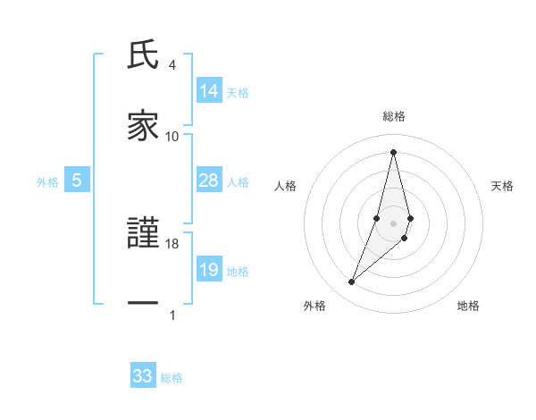 氏家 謹一さんの総格は33画の4点!