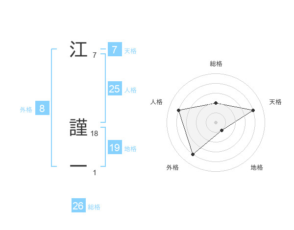 江 謹一さんの総格は26画の2点!