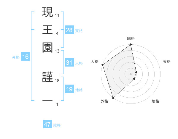 現王園 謹一さんを姓名の画数から五運を鑑定