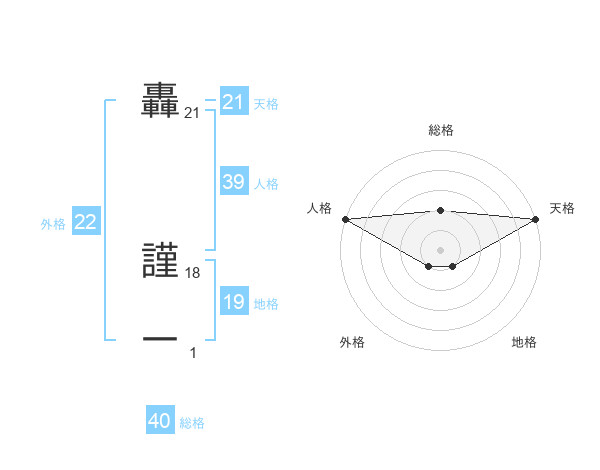 轟 謹一さんの外格は22画の1点!