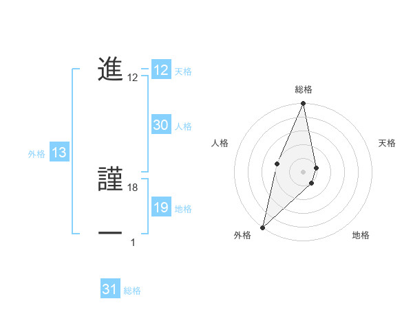 進 謹一さんの外格は13画の5点!