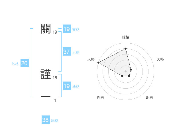 關 謹一さんの総格は38画の4点!