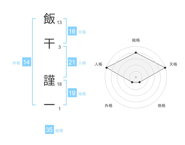 飯干 謹一さんを姓名の画数から五運を鑑定