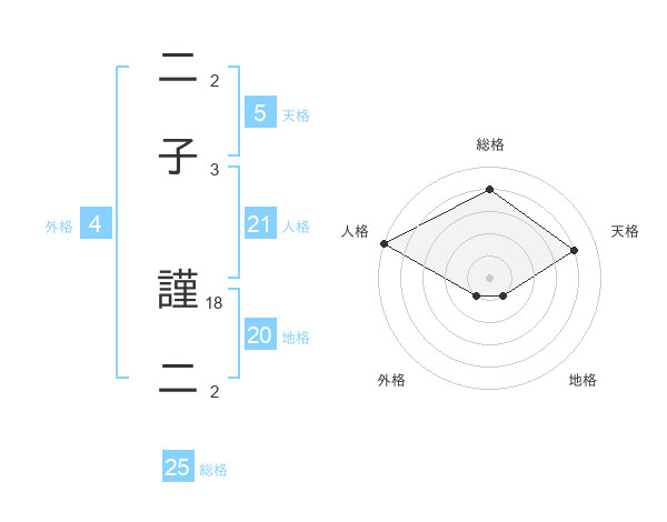 二子 謹二さんの総格は25画の4点!