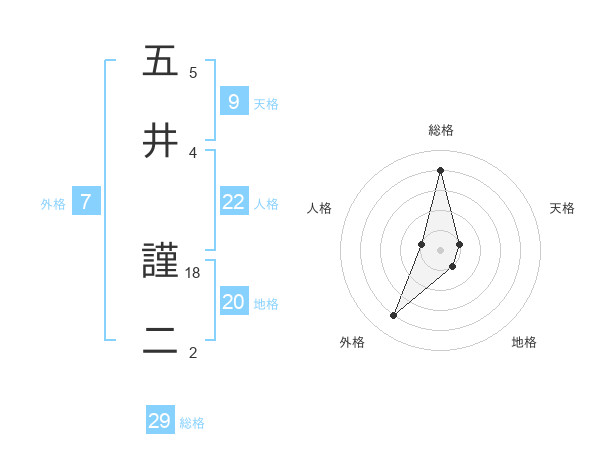 五井 謹二さんの総格は29画の4点!