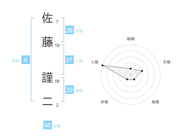 佐藤 謹二さんの人格は37画の5点!