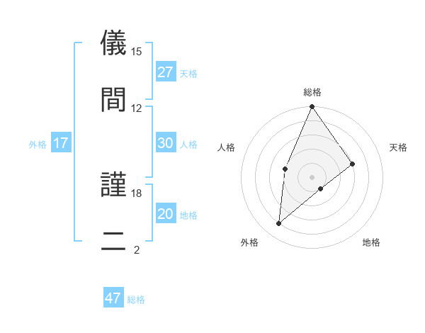 儀間 謹二さんを姓名の画数から五運を鑑定