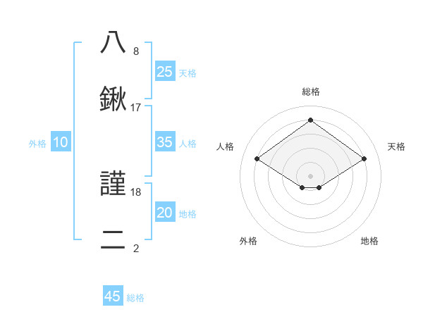 八鍬 謹二さんの天格は25画の4点!