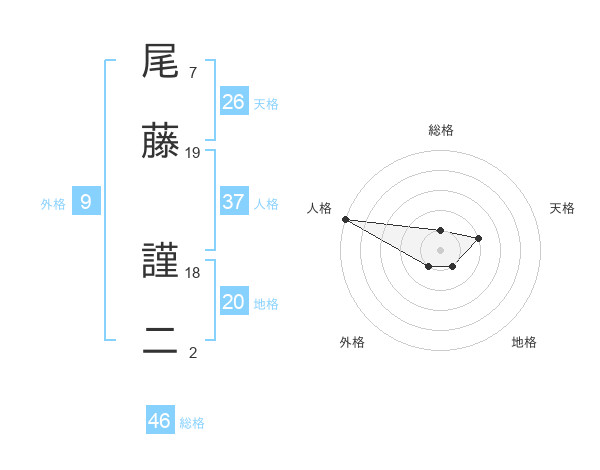尾藤 謹二さんの天格は26画の2点!