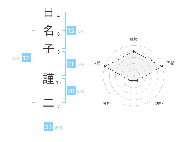 日名子 謹二さんの天格は13画の5点!
