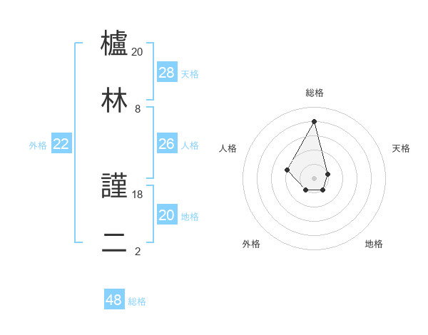櫨林 謹二さんの総格は48画の4点!