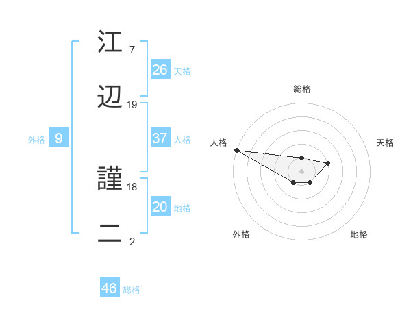 江辺 謹二さんを姓名の画数から五運を鑑定