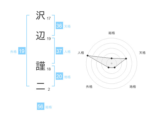 沢辺 謹二さんを姓名の画数から五運を鑑定