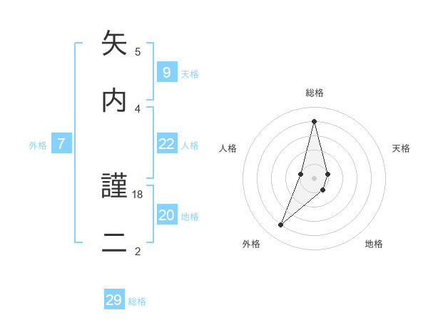矢内 謹二さんの総格は29画の4点!