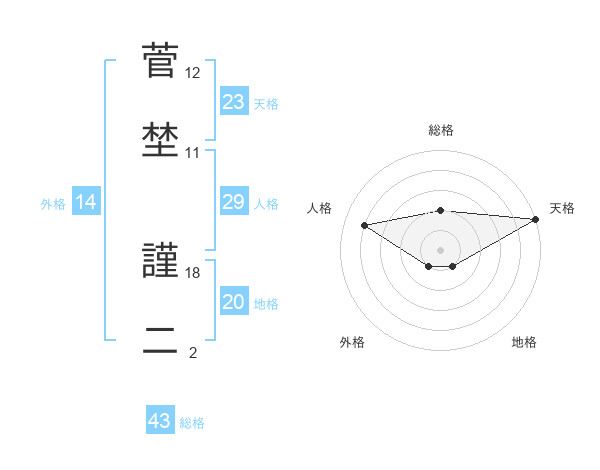 菅埜 謹二さんの天格は23画の5点!