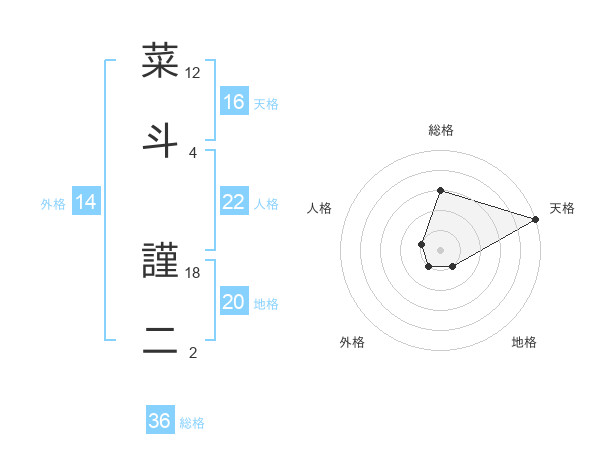 菜斗 謹二さんの天格は16画の5点!