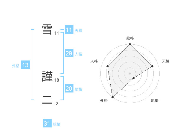 雪 謹二さんの地格は20画の1点!