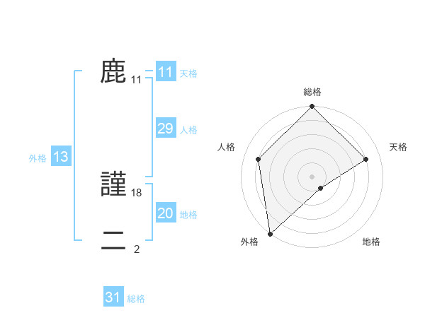 鹿 謹二さんを姓名の画数から五運を鑑定