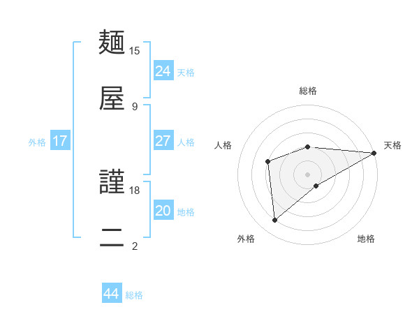 麺屋 謹二さんを姓名の画数から五運を鑑定