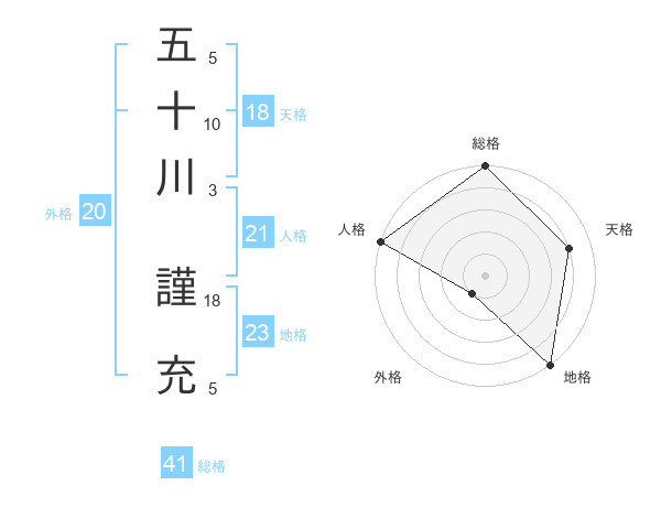 五十川 謹充さんを姓名の画数から五運を鑑定