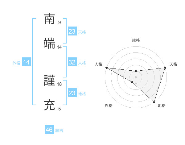南端 謹充さんの天格は23画の5点!