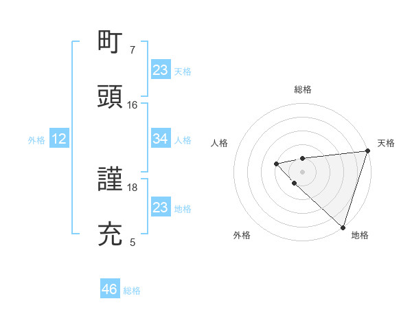町頭 謹充さんの地格は23画の5点!