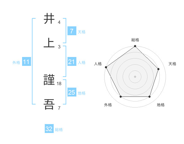 井上 謹吾さんを姓名の画数から五運を鑑定