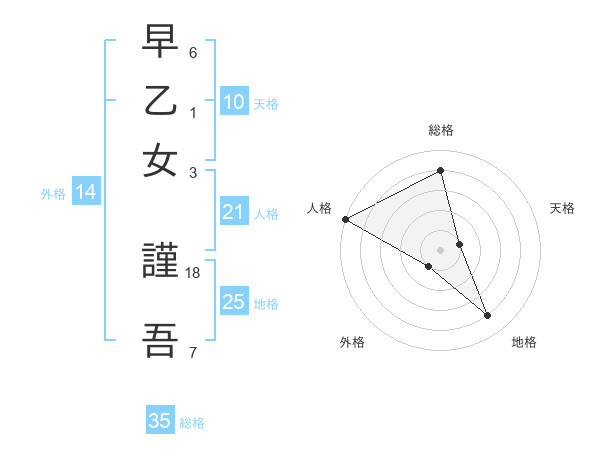 早乙女 謹吾さんを姓名の画数から五運を鑑定