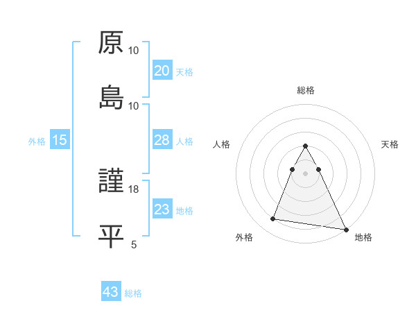 原島 謹平さんの総格は43画の2点!