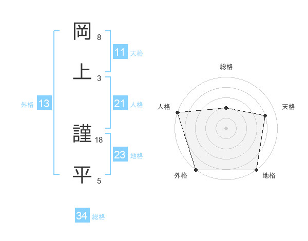 岡上 謹平さんを姓名の画数から五運を鑑定
