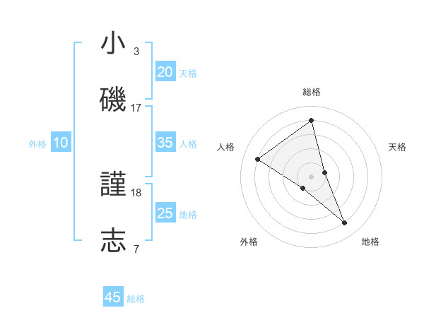 小磯 謹志さんの総格は45画の4点!
