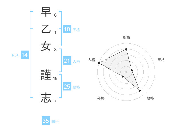 早乙女 謹志さんの総格は35画の4点