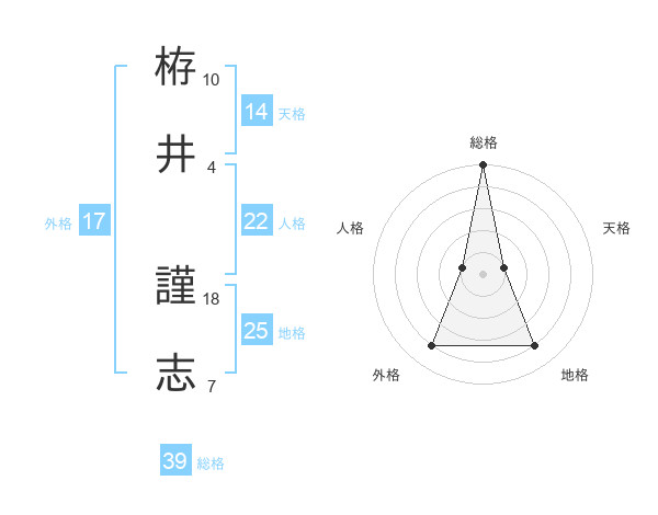 栫井 謹志さんを姓名の画数から五運を鑑定