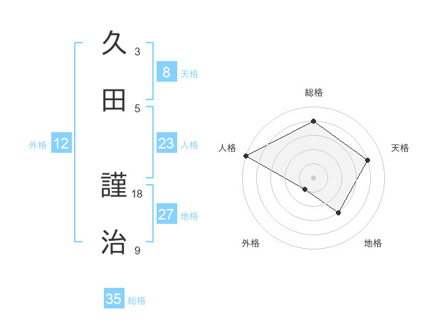 久田 謹治さんの総格は35画の4点!