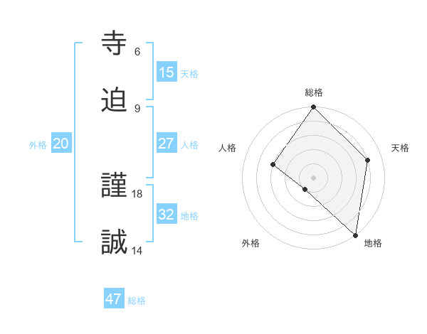 寺迫 謹誠さんの総格は47画の5点!